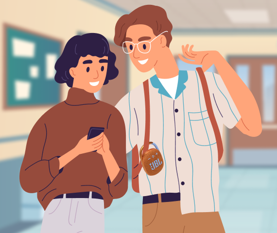 Делись любимыми треками с друзьями между занятиями. Колонки JBL помогут тебе в этом! Только не включай музыку на полную громкость, ты же все-таки в учебном заведении 🤫